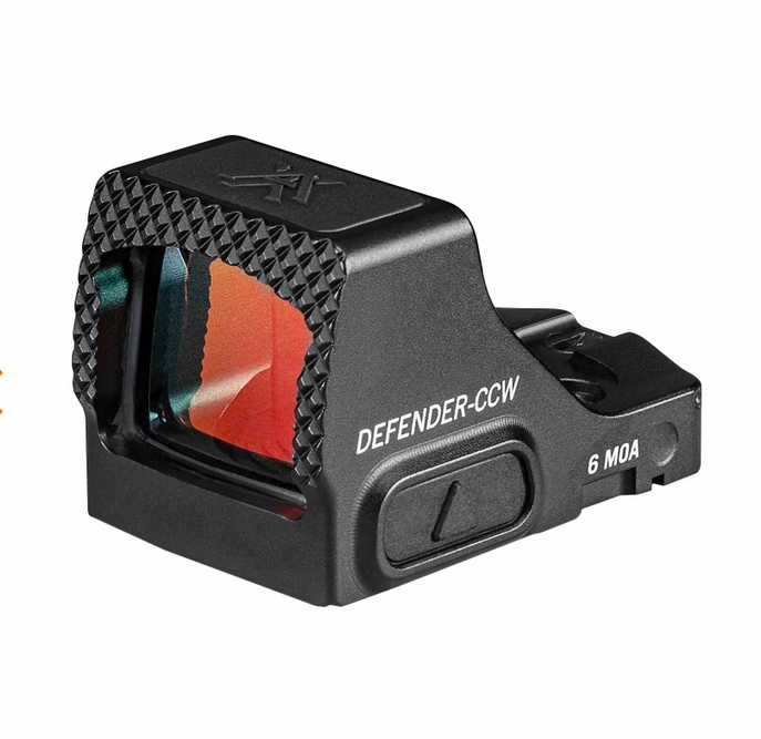Vortex Defender-CCW to ultralekki kolimator MRDS, zaprojektowany z myślą o broni krótkiej noszonej w ukryciu. W Defender-CCW zastosowano imponująco dużą asferyczną soczewkę z twardą powłoką Armortek, wkładkę Shockfield efektywnie pochłaniającą wstrząsy, czujnik ruchu zwiększający żywotność baterii oraz footprint w popularnym standardzie Shield RMS/RMSc.