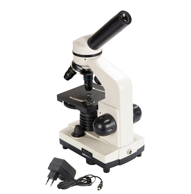 Najprostszy mikroskop biologiczny klasy edukacyjnej, przeznaczony dla początkującego użytkownika. Mikroskop wyposażony jest w szklana optykę. Posiada trzy, achromatyczne obiektywy, dające powiększenie w zakresie 40-400x, a z opcjonalnym okularem P16x można je zwiększyć do 640x. Wystarcza to w zupełności do obserwacji większość interesujących obiektów - np. komórek i tkanek roślin oraz zwierząt, pierwotniaków i planktonicznych skorupiaków w kropli wody.