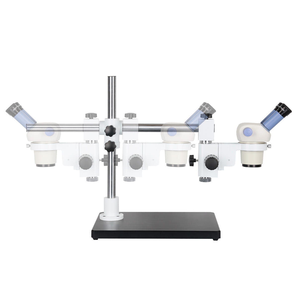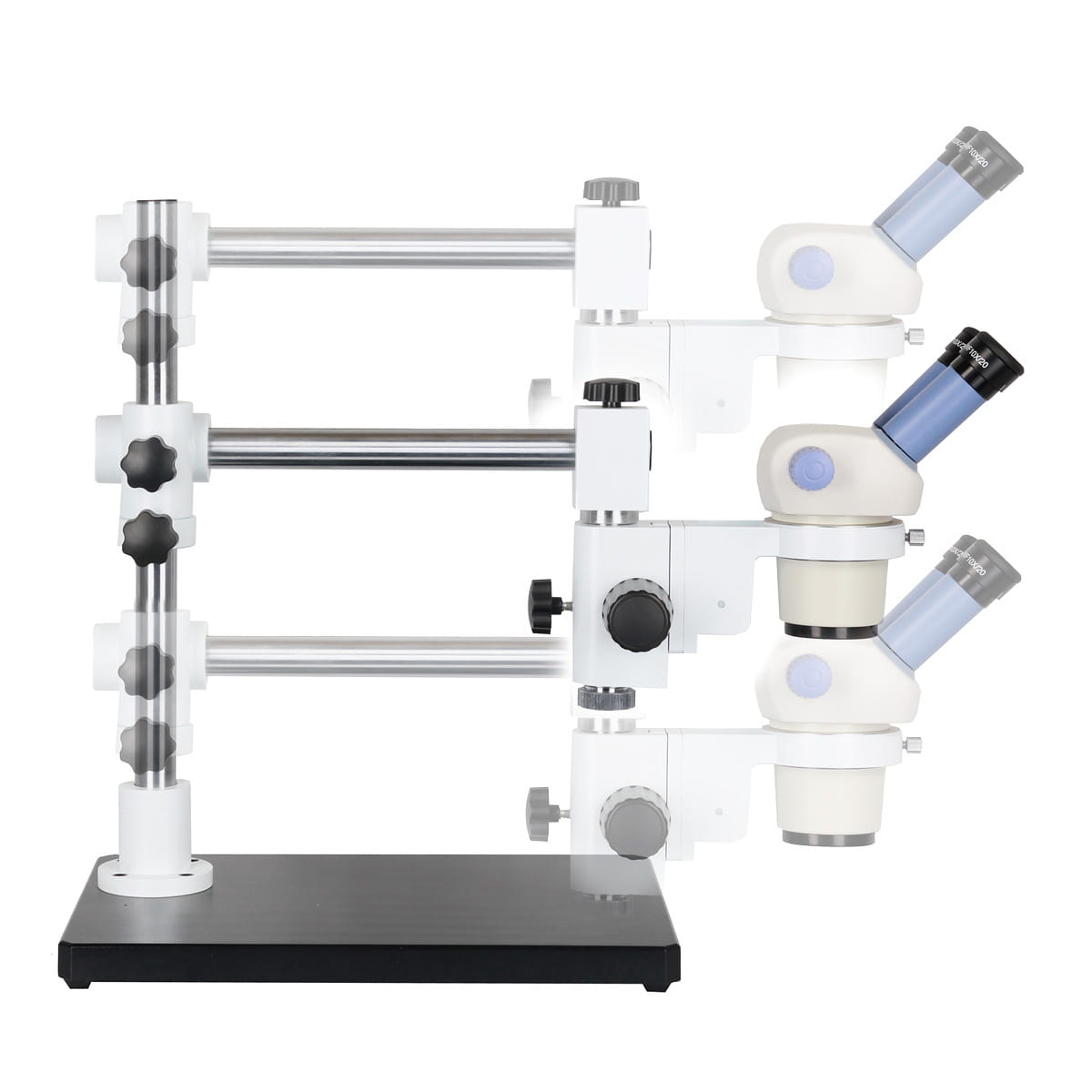 uchwyt głowicy stereoskopowej jest utrzymywany dokładnie w pionie we wszystkich położeniach, dzięki specjalnej prowadnicy (wycięcie na całej długości ramienia)
