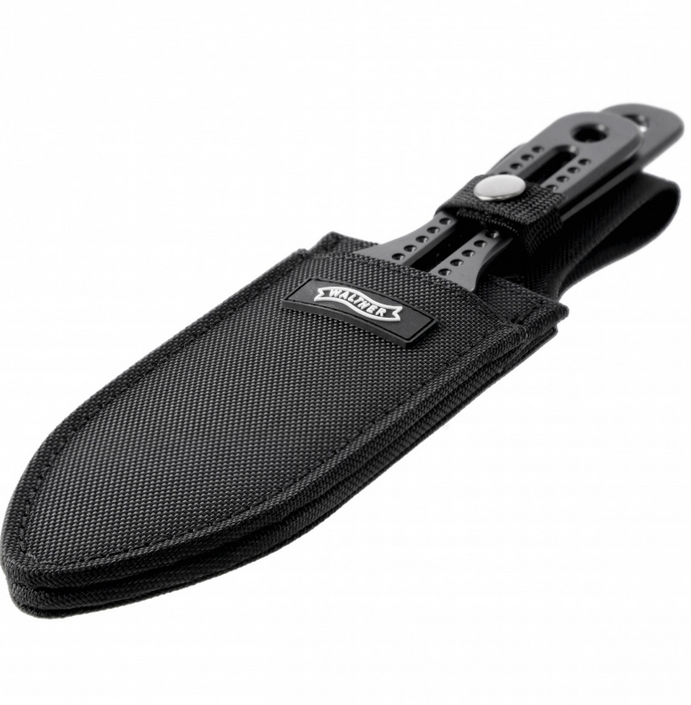 Wraz z nożami w zestawie znajduje się nylonowa pochewka, która pozwala na bezpieczne przenoszenie i przechowywanie noży do rzucania Walther ATK.